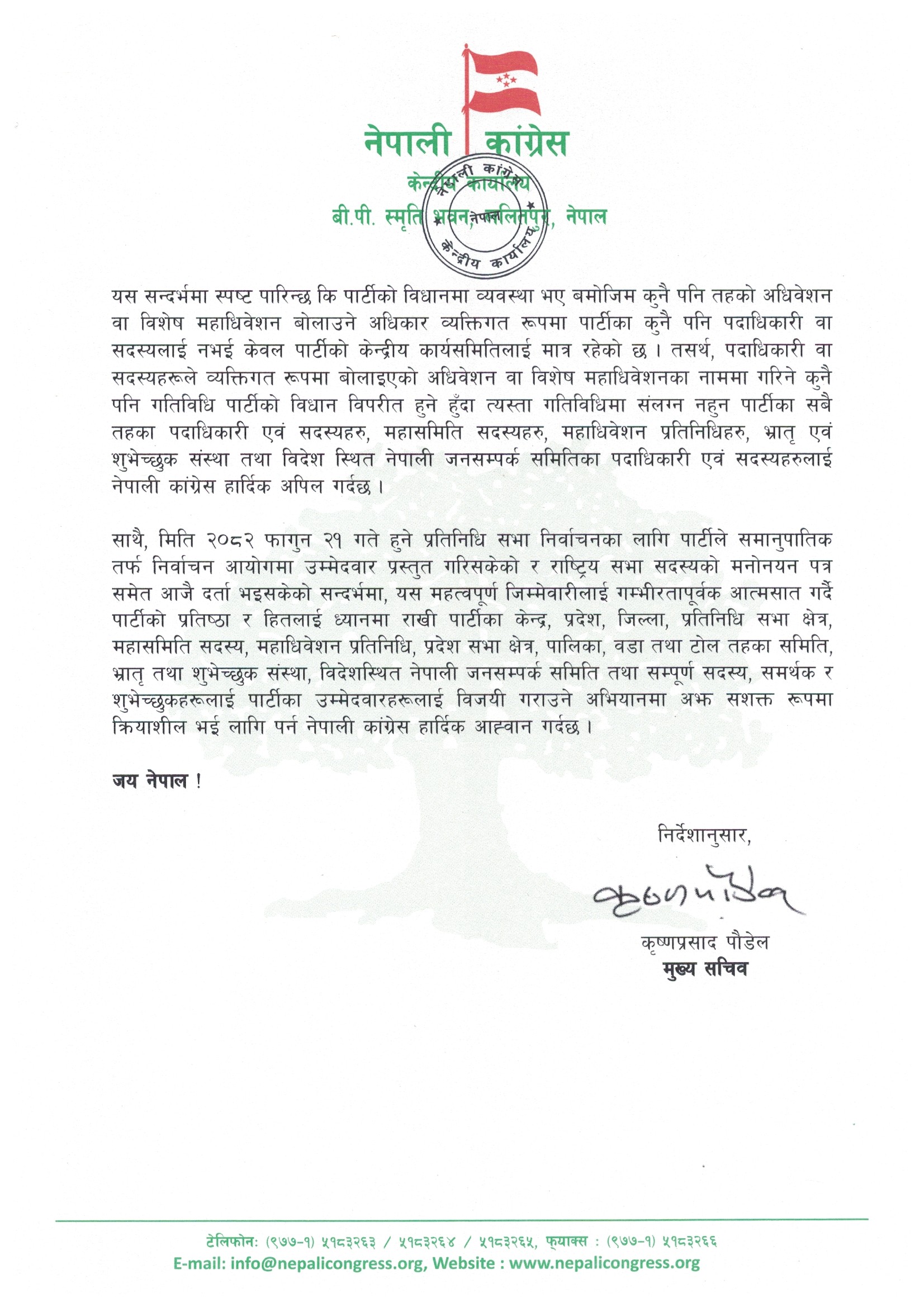 महामन्त्रीद्धय गगन थापा र विश्वप्रकाश शर्माको विज्ञप्ति :