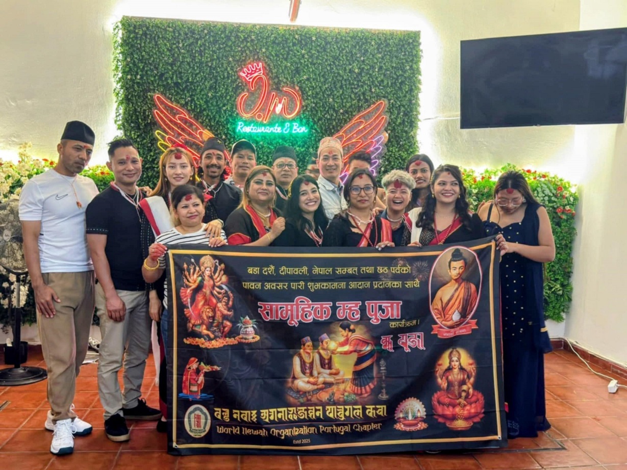 पोर्तुगल । वल्ड नेवाः अर्गनाइजेसन पोर्तुगल च्याप्टरले नेपाल सम्बत ११४६ न्हु दँको शुभारम्भको ऐतिहासिक अवसरमा विशेष म्ह पुजाका साथै शुभकामना आदान–प्रदान कार्यक्रम भव्य रूपमा सम्पन्न गरेको छ । कार्यक्रमको उद्देश्य समुदायका सदस्यहरूलाई एउटै मञ्चमा ल्याई नेवाः संस्कृति, भाषा र परम्पराको संरक्षण तथा प्रवद्र्धन गर्ने रहेको थियो ।